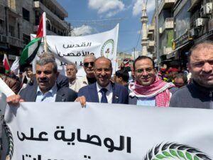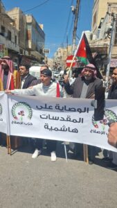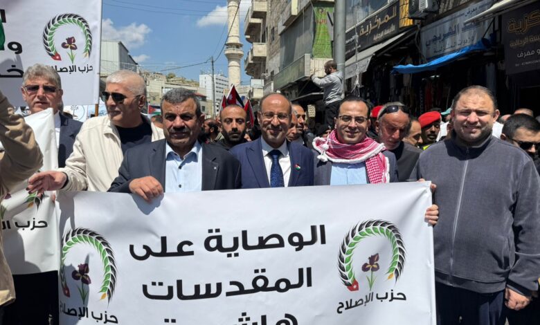 الرقم نيوز- شارك حزب الإصلاح بقيادته ونوابه وكافة فروعه وأعضائه من مختلف محافظات المملكة في المسيرة المركزية التي انطلقت تأكيداً على دعم الوصاية الهاشمية على المقدسات الإسلامية والمسيحية في القدس الشريف