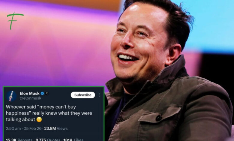 كتب ماسك، أغنى شخص في العالم، على منصة X، “من قال إن المال لا يشتري السعادة كان على حق”.
