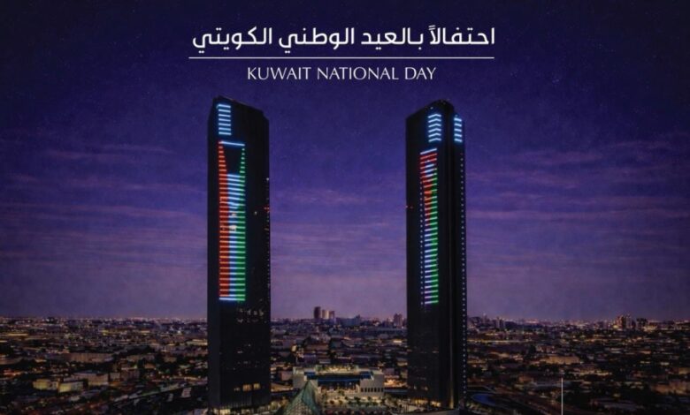 بوابة الأردن تضيء برج لوسنت السكني بعلمي الأردن والكويت احتفالًا بالعيد الوطني الكويتي