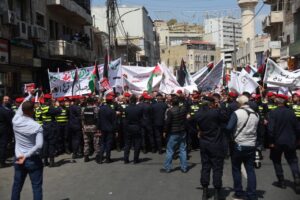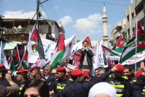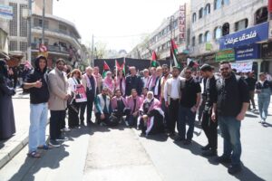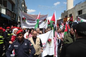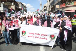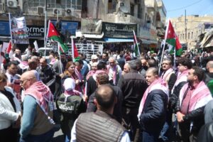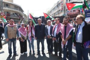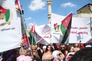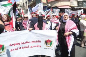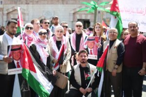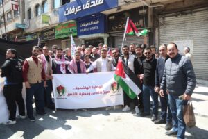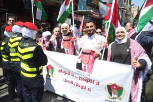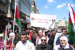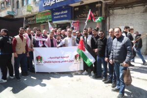 وجاءت مشاركة الحزب في هذه المسيرة، التي رُفعت فيها شعارات “لا لإغلاق الأقصى، لا لإعدام الأسرى”، تعبيرًا عن الالتفاف الشعبي والحزبي حول القيادة الهاشمية، وتأكيدًا على أن قضية القدس والمسجد الأقصى المبارك تمثل أولوية وطنية وقومية ثابتة لا تقبل المساومة.