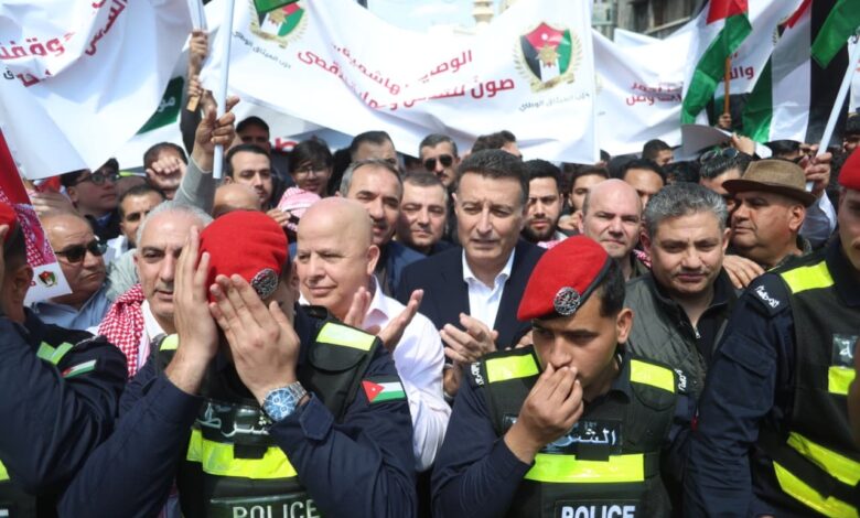 وأكد الحزب، في بيان له على هامش المسيرة، أن الأردن بقيادته الهاشمية يواصل أداء دوره التاريخي في الدفاع عن القضية الفلسطينية، وصون المقدسات الإسلامية والمسيحية في القدس، انطلاقًا من الوصاية الهاشمية التي تشكل صمام أمان في حماية هوية المدينة المقدسة والحفاظ على الوضع التاريخي والقانوني القائم.