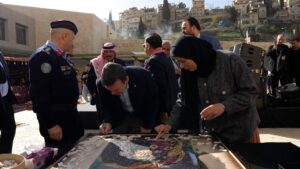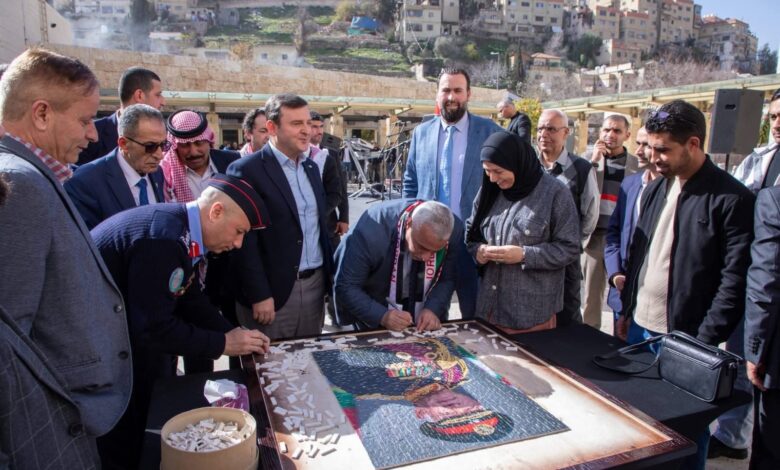 وفي ختام الحفل، شارك الحضور في إنتاج لوحة فسيفسائية تحمل صورة جلالة الملك عبدالله الثاني ابن الحسين، تعبيرًا عن مشاعر الولاء والانتماء، وتجسيدًا للفخر بالقيادة الهاشمية.