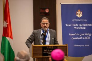 وقال الدكتور حجازين، إن هذه الورشة المتخصصة لتأهيل الأدلاء في مجال الحج المسيحي تأتي في إطار الجهود المستمرة للارتقاء بجودة السياحة الدينية في الأردن، وتعزيز مكانة المملكة كمقصد رئيسي لفهم تاريخ المسيحية وجذورها العميقة، سيما وأن ما يزخر به الأردن من مواقع مقدسة وفي مقدمتها موقع عماد السيد المسيح المغطس، يجعله محطة أساسية على خارطة الحج المسيحي العالمي، مؤكداً أن الدليل السياحي المتخصص يشكل عنصرا محوريا في نقل الرسالة الحضارية والروحية التي تجسدها هذه المواقع.