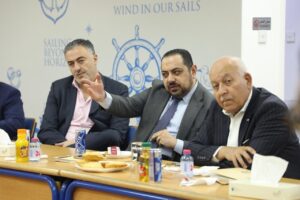 وفي مستهل اللقاء، رحّب نقيب نقابة ملاحة الأردن السيد زيد الكلالدة بالحضور، والذي ضمّ كلًا من رئيس غرفة تجارة عمان سعادة العين خليل الحاج توفيق ونقيب نقابة أصحاب شركات التخليص الدكتور ضيف الله أبو عقولة، ونقيب النقابة اللوجستية الأردنية السيد نزار صالح، ومدير الشحن الجوي التجاري لدى الملكية الأردنية السيد خالد الخوالدة، إلى جانب عدد من أعضاء مجالس إدارة النقابات المعنية.